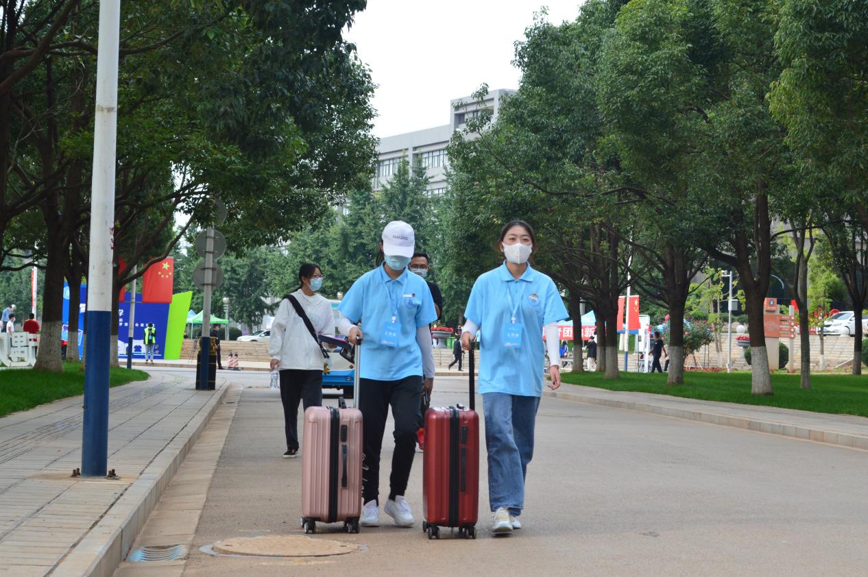 云南工商学院迎新接待点,设在学院宏远楼B栋一楼,随着学校各门口的志愿者的接引,2021级新同学陆陆续续的到来,志愿者们迅速帮助他们把行李寄存好,有条不紊的引领新生找到自己的辅导员报到,并完成所有程序,由于疫情的影响,学校采用线上报名缴费的模式,给新同学一个安全放心的环境,报到过程虽然简单,但其中不乏有语言差异等问题,在院领导和老师的细心讲解下,真正做到了:沟通零距离,沟通无差异。