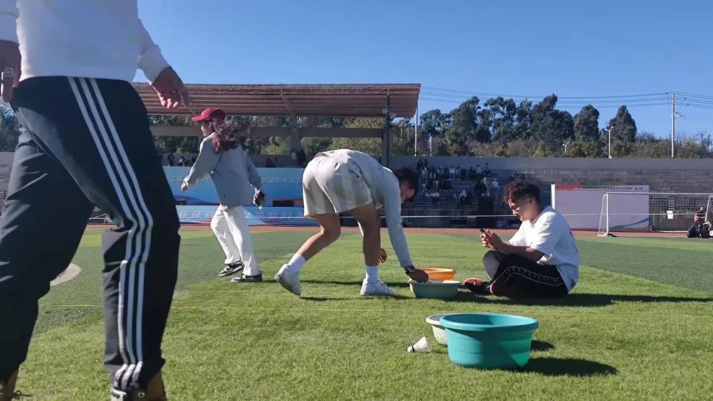 大家在操场上不断来回接力,运用羽毛球,作为传递物,在相互传递中,展示出民族之间团结与积极向上,同时使得同学们的身体素质得到提升。
