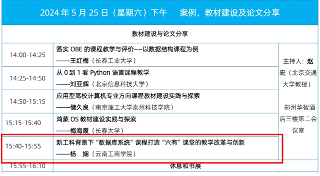 “数据库系统”课程教学团队的论文《新工科背景下“数据库系统”课程打造“六有”课堂的教学改革与创新》被《计算机教育》杂志收录并获得现场分享邀请。届时来自全国的二十余所高校将展示优秀教学成果和对精品课程建设进行经验分享,云南工商学院是云南省唯一参与本次分享的高校。