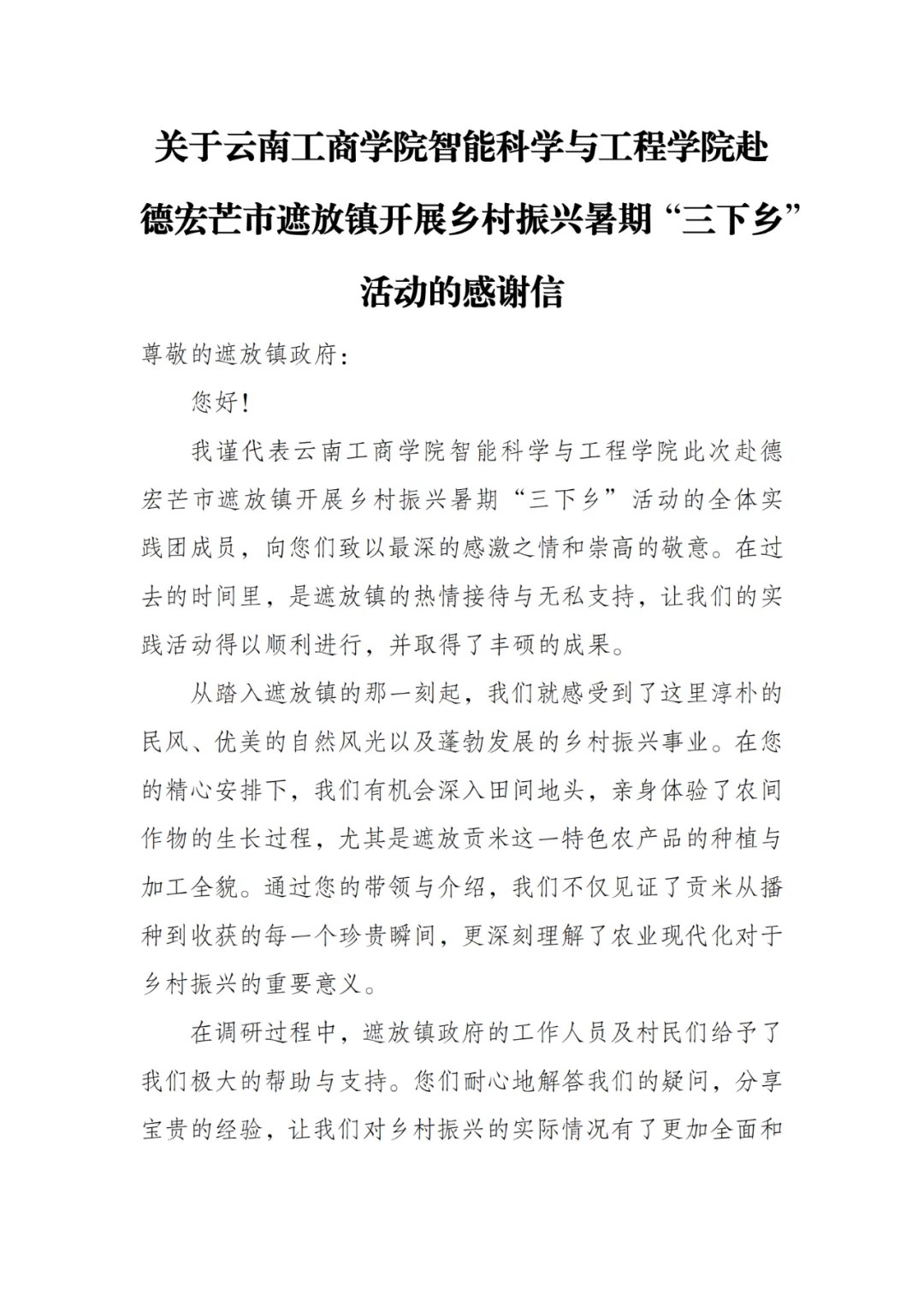 此次“三下乡”活动,不仅是一次对遮放贡米产业链的深入探索,更是一次心灵的洗礼和成长的见证。云南工商学院智能科学与工程学院实践团队的每一位成员都将带着这份宝贵的经历,继续在各自的领域发光发热,为实现中华民族伟大复兴的中国梦贡献青春力量。
