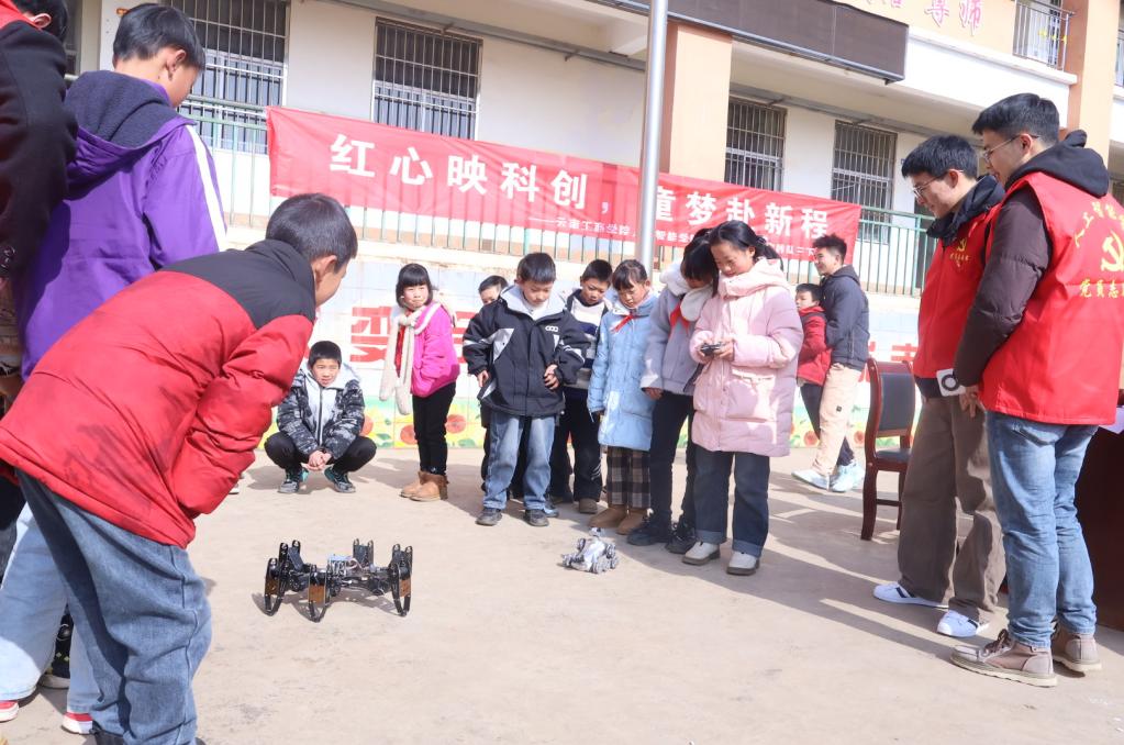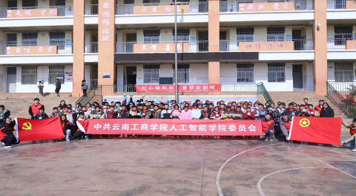 1月12日,人工智能学院党委组织师生党员志愿服务队,远赴云南省曲靖市会泽县火红乡火红小学,开展“红心映科创,童心赴新程”科技展暨学生专业社会实践活动。活动以党建为引领,将前沿科技科普与乡村教育帮扶相结合,为山区孩子们带来了一场沉浸式的科技盛宴,在孩子们心中播撒下科技创新的种子。