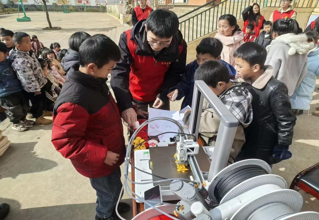 交流互动环节中,孩子们踊跃举手提问,“机器人能帮农民伯伯种地吗?”“3D打印机能打印出书本吗?”“怎样才能成为人工智能科学家?”党员逐一耐心解答,同时分享自身求学与科研经历,鼓励孩子们保持好奇心与求知欲,努力学习科学文化知识,未来用科技改变家乡、报效祖国。