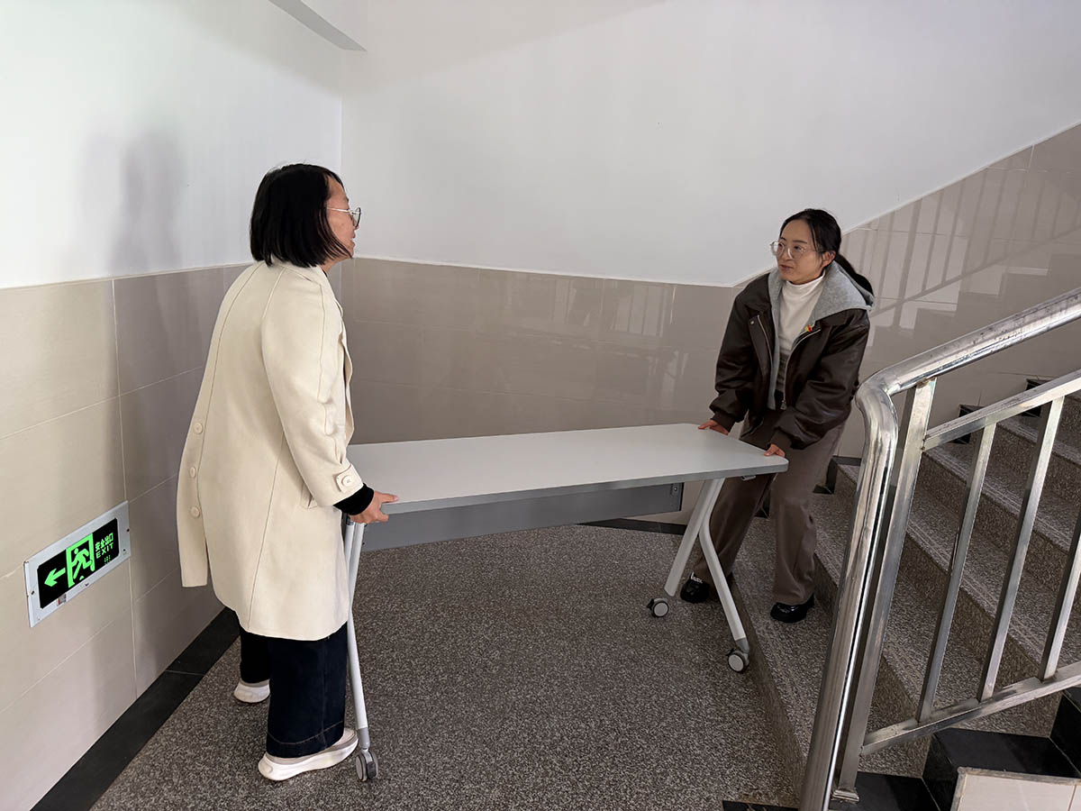 理论学习结束后,全体党员在宏远楼B栋开展实践劳动。时值新学期开学准备阶段,部分教室需进行课桌椅调整与教学设备整理。党员们分工协作、默契配合,搬运摆放课桌椅,归类整理无人机、电脑等教学设备。经过共同努力,相关教室环境焕然一新,教学设备摆放井然有序,为新学期课堂教学提供了整洁、规范的环境保障。