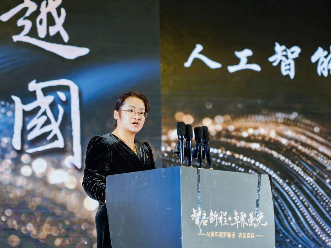 人工智能学院党委书记黄翠芬作总结讲话,祝贺大会圆满举行,肯定获奖学子与优秀班集体,并向全院师生提出新期望:以榜样为帆、以奋斗为桨,在人工智能领域勇攀高峰,在青春赛道奋力奔跑。