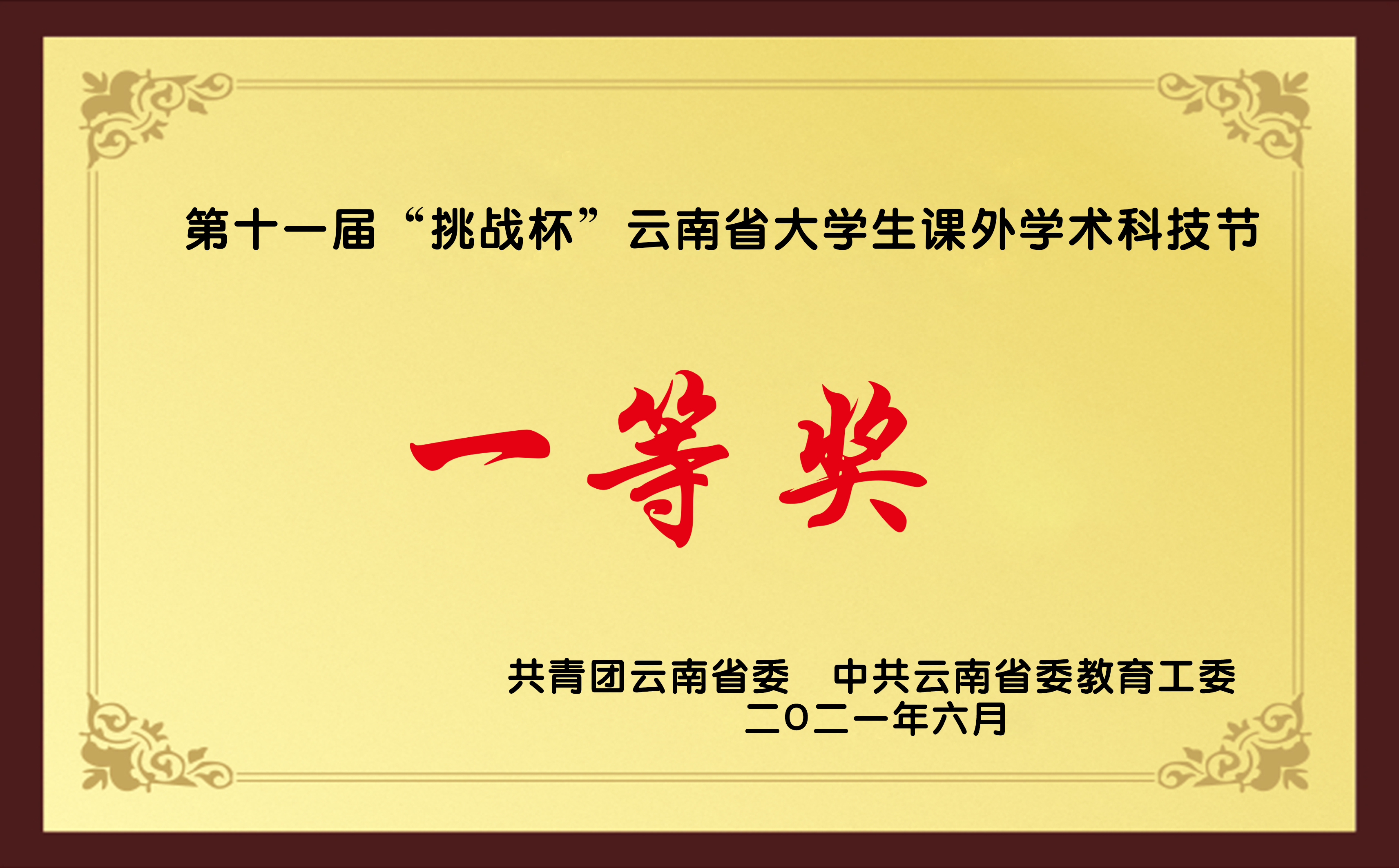 第十一届“挑战杯”云南省大学生课外学术科技节一等奖