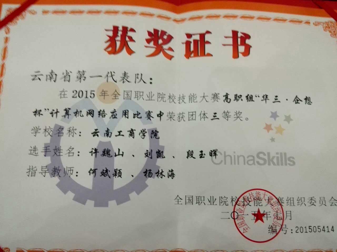 (全国赛)全国(华三杯)计算机网络应用大赛三等奖