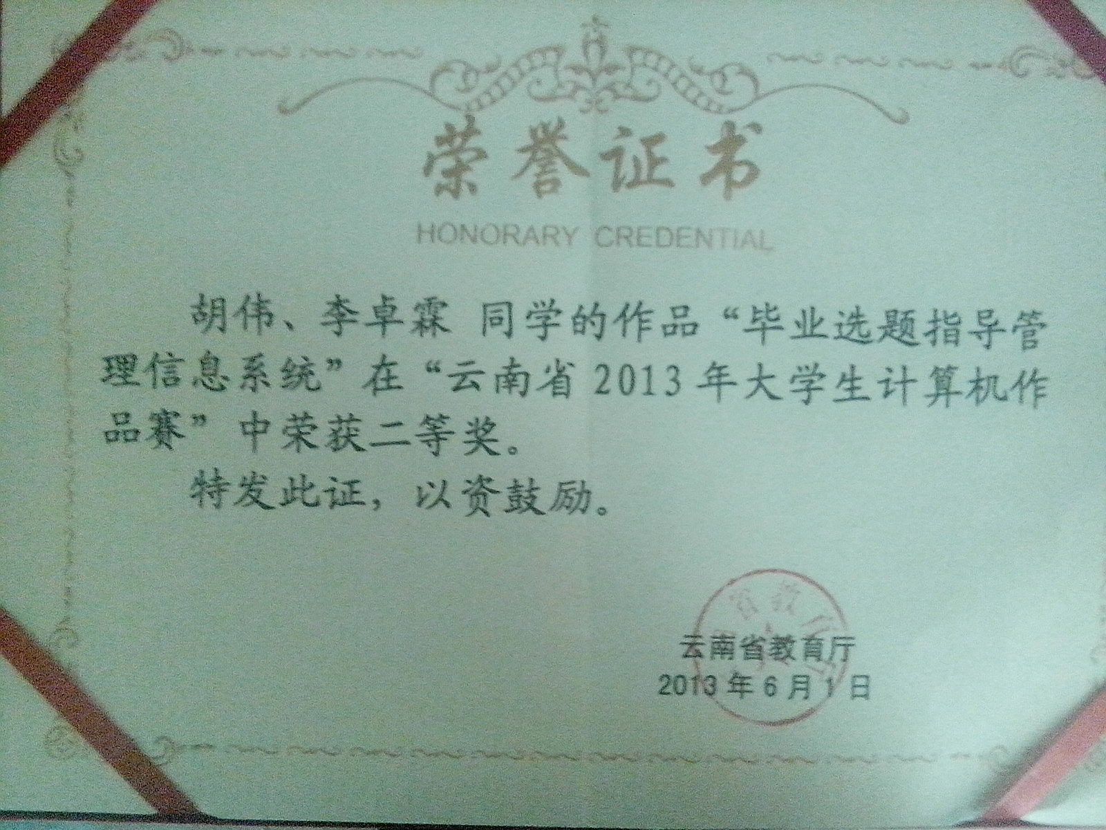 (云南省)云南省大学生计算机作品赛二等奖
