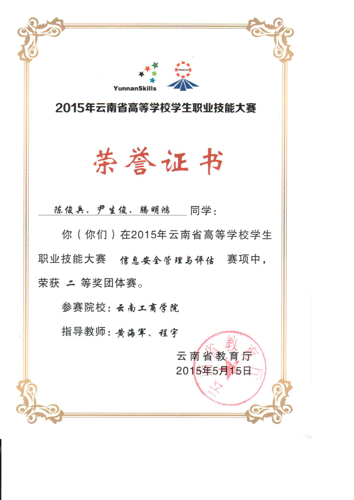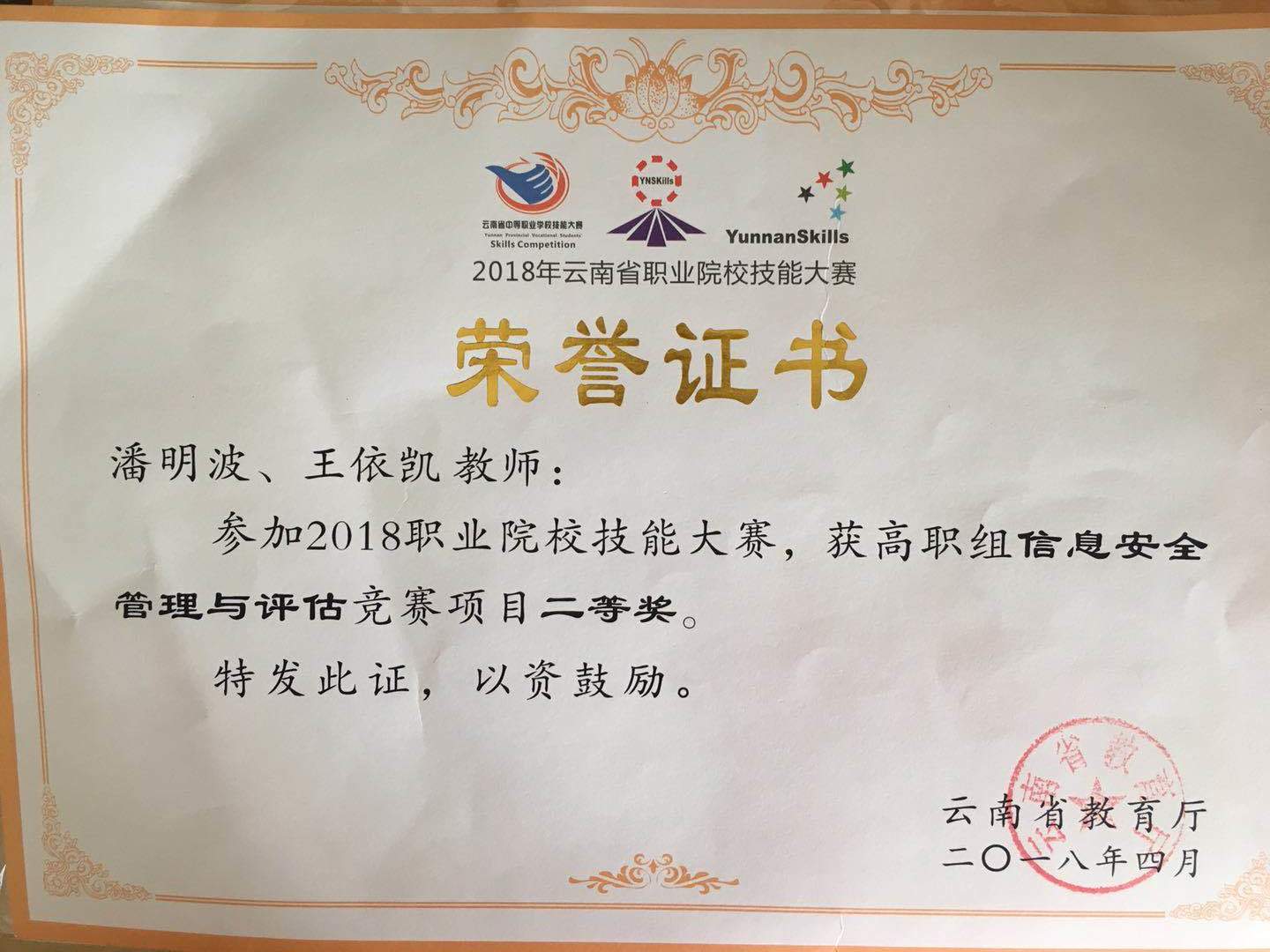 (云南省)信息安全管理评估赛二等奖