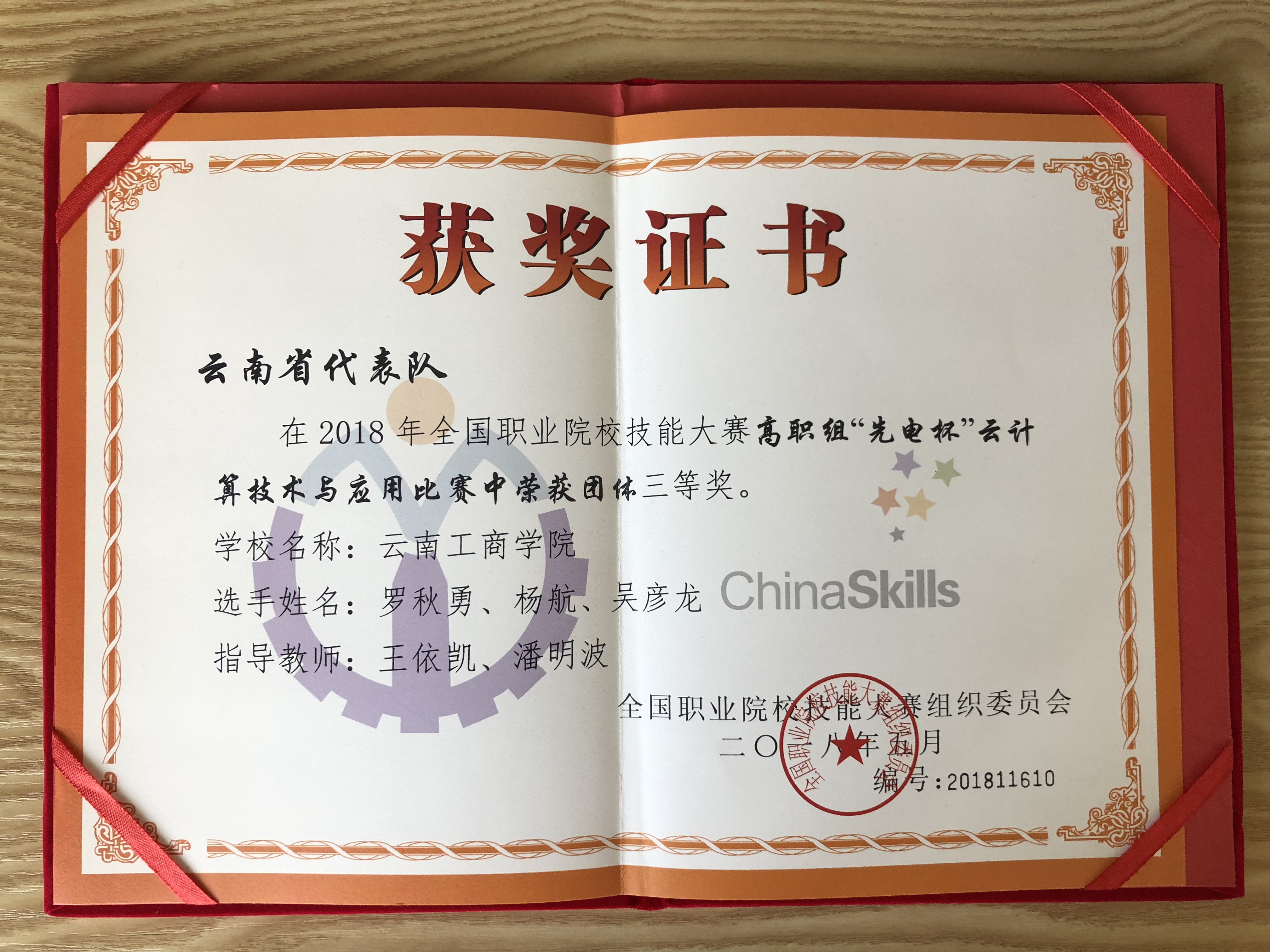 在2018年全国职业院校技能大赛上,云南工商学院信息工程学院代表云南省参加
