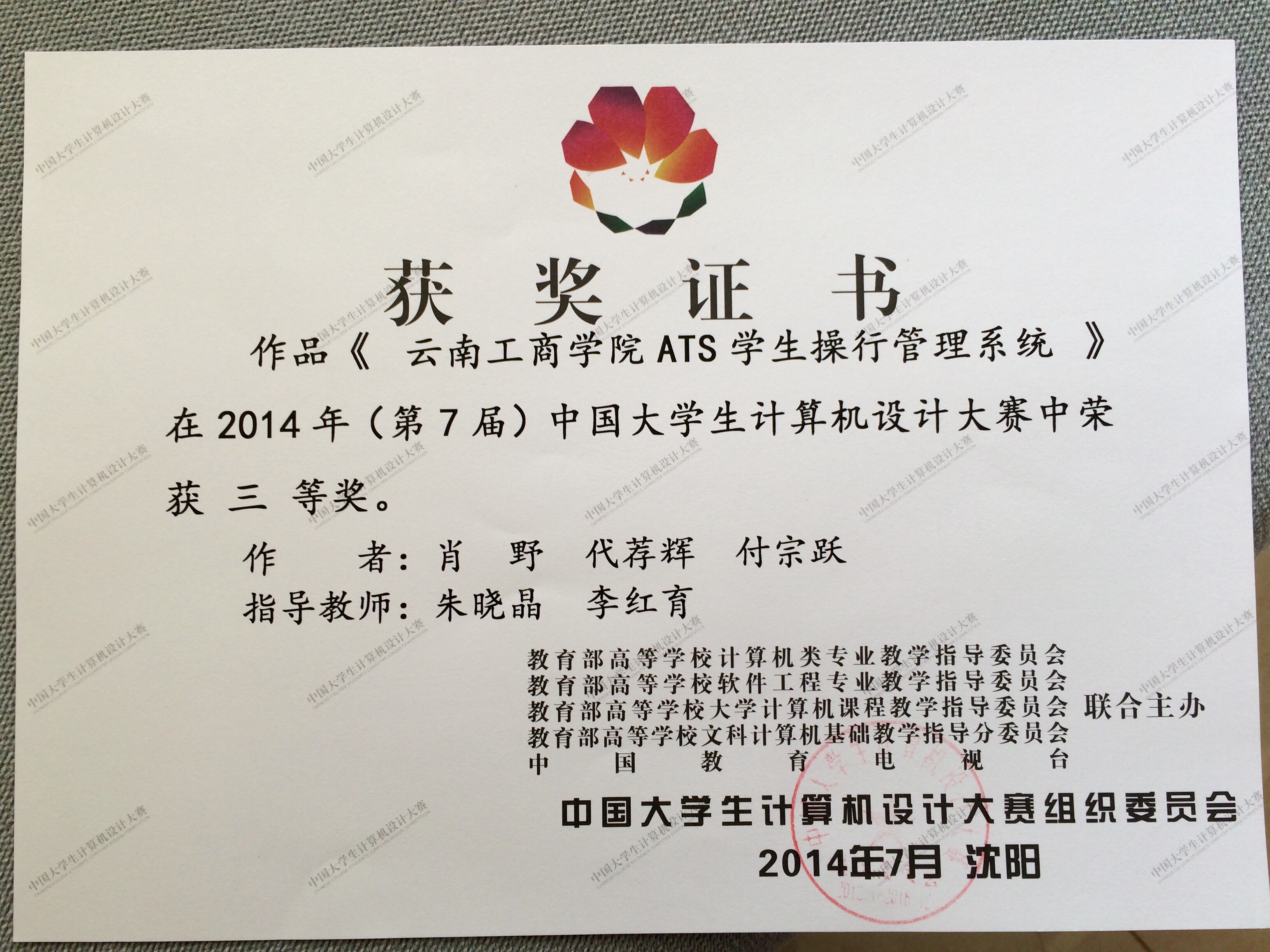 (云南省)云南省“联想杯”大学生计算机设计大赛二等奖