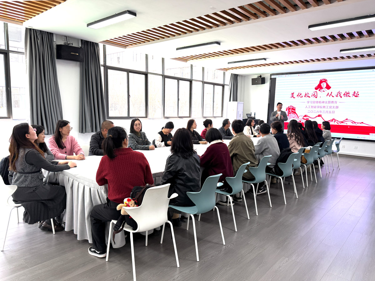 为深入贯彻落实关于弘扬雷锋精神的重要指示,深刻把握雷锋精神的时代内涵,并积极响应学校关于新学期开学保障工作的号召,人工智能学院教工党支部于2026年3月5日下午组织全体党员,开展了“美化校园 从我做起”学雷...