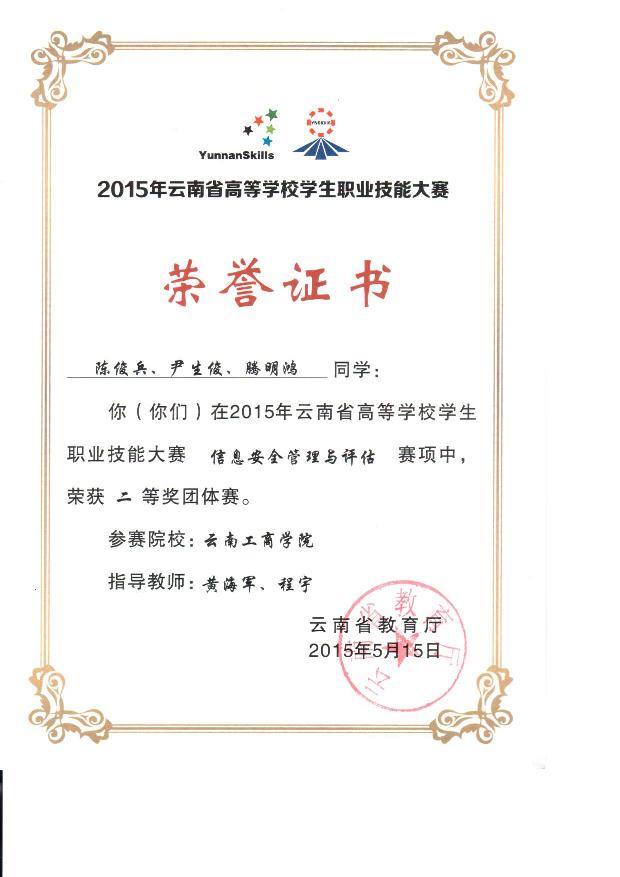 (云南省)云南省信息安全管理与评估大赛二等奖