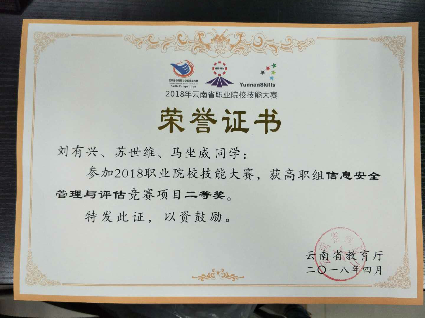 威同学获得(信息安全管理评估赛)省赛二等奖。